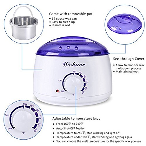 Studio : Iwalouges Publisher : Iwalouges Binding : Misc. Product Description Packages: 1 *wax warmer 4pcs *wax beans(blackberry, lavender, strawberry, greentea) 10pcs* wood-sticks CE Approval Voltage: AC 110 V, 60HZ, US Heavy Duty PLUG Power: 100W Capacity: 400cc Weight 750g/1.65 lbs Size: 20*20*15.2cm/7.9*7.9*6.1in Directions For Use: 1. Clean the area you want to to be dealt with. 2. Take appropriate amount of wax beans into a depilatory wax heater. 3. Heat the wax to a melting temperature until it melted totally. Spread the melted wax on the skin along the direction of the hair growth.(Always test the temperature of the wax before putting the melted wax on your skin ) 4. Let the melt wax have a short period cooling (about 20 minutes) and then holding the skin taut, remove wax with a firm action against the direction of the hair growth quickly and strongly. 5. Clean the skin with skin cream after hair removal waxing. Cleaning Instructions: a.Cleaning the wax pot while it is still warm is much easier than when it completely cooled down. b.Turn the electric wax warmer off, unplug it and let the wax stay until the wax pot is not hot and safe to touch. Put a few drops of fragrance and color free oil onto a paper towel and wipe out the pot/ machine as well as the rim.The oil will dissolve the wax and it simply disappears. Any oily residue left behind can be wiped off with a clean, dry cloth. Using oil will also prolong the life of your wax pot or machine. Note: The colors of our hair removal wax accessorize may different in photo and real life due to variations between the computer monitors and naked eye color difference. 0