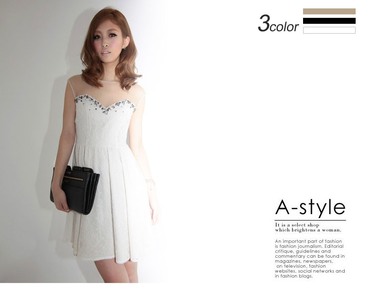 | スタッフコメント | 新作着痩せして見えるシルエット、スタイルがよく魅せるワンピースです!フロント部分を華奢にみせる輝くビジュー付きで、肌色は綺麗に見える、アクセサリーしなくても大丈夫ぐらい一枚コーで完成できるワンピースです。しっかりしてるレース素材と一つ一つ職人の手縫いにより繊細ビジューだからこそ、上品さ溢れるワンピースです^^ |