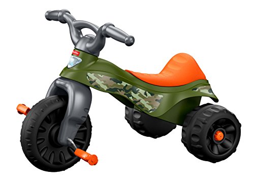 ReleaseDate : 2017-08-24 Studio : Fisher Price Publisher : Fisher Price Binding : Toy Product Description Here's a kid-powered tricycle that's as fun, tough and adventurous as your little one. The big foot pedals get the good times rolling as kids cruise along on this trike that's all tricked out in a cool camouflage pattern. The rugged tires, stable wheel base, and easy-grip handlebars make it easy for even the littlest riders to get moving ? and the big seat ensures that their ride is comfy wherever their travels and adventures take them. Shhhh there's even a secret storage compartment under the seat to keep toys and snacks hidden until little drivers pull over for a rest stop!. 0