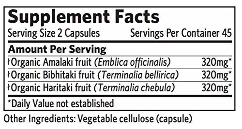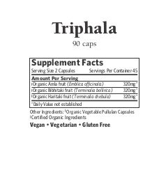 -. Feature : PURE TRIPHALA CAPSULES - Cleanse and support the entire GI tract, improving digestion, elimination and assimilation of nutrients with Organic India Triphala Capsules. / FOR NATURAL DIGESTIVE SUPPORT - This traditional Vedic, organic Triphala herbal formula is a gentle, nourishing blend of three organic fruits rich in vitamin C, antioxidants and properties to promote deep internal cleansing. / BEYOND ORGANIC - Our products are made with ingredients grown organically on small family farms that work hard to regenerate the soil, protect biodiversity and be fully ethical and sustainable. / NATURAL CHOICE - Organic India Triphala Capsules are Vegan, Vegetarian, Gluten Free, Non-GMO Project Verified, Kosher and Halal Certified. / GLOBAL WELLNESS LEADER - Organic India aims to create a global environment of true wellness, from training and supporting small family farmers in India to providing the highest quality health products available.