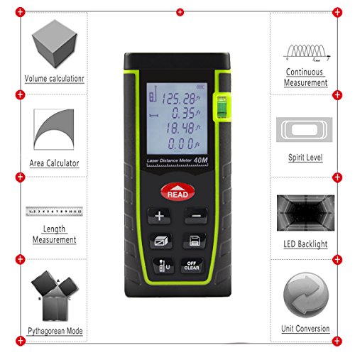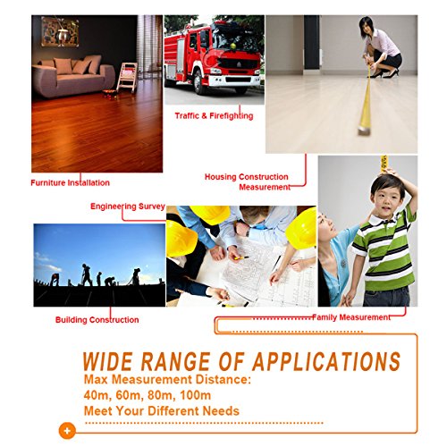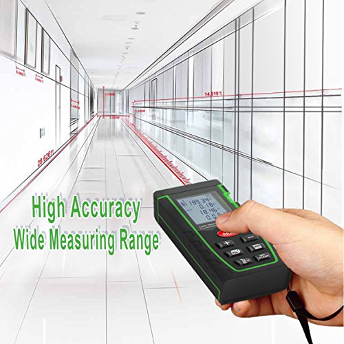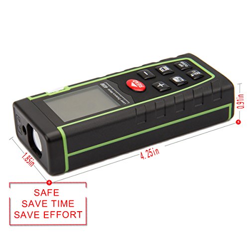 Easy targeting with bright laser pointer, the laser distance measure makes field work easier and safer. Ideal for home, construction, industries, large areas such as rooms, apartments, buildings, real estates, factories, warehouses.