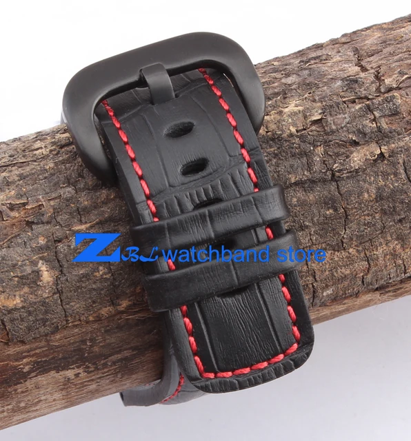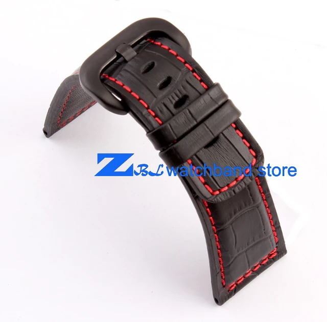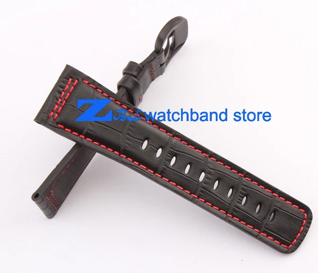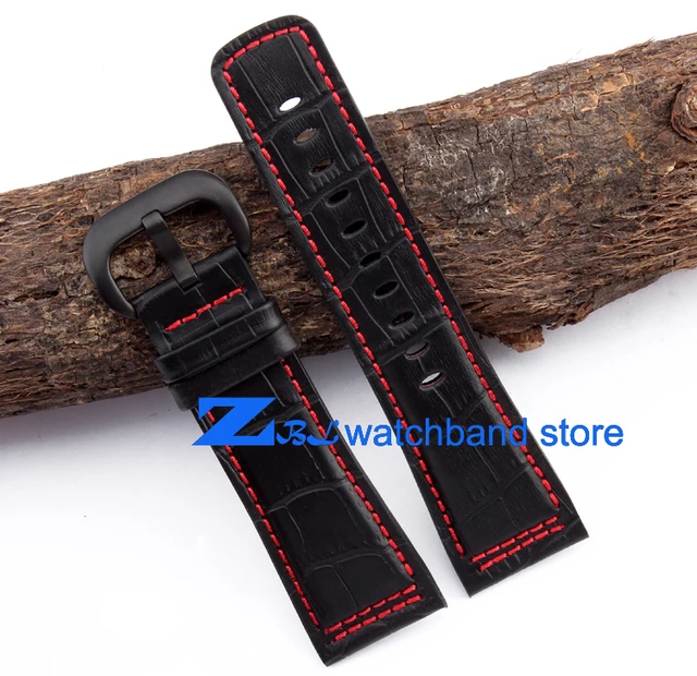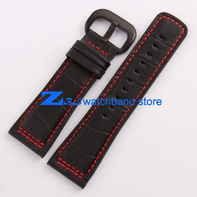 높은 품질의 가죽 손목 28 미리메터 블랙 레드 스티치 스트랩 금요일 남성 시계 시계 밴드 액세서리