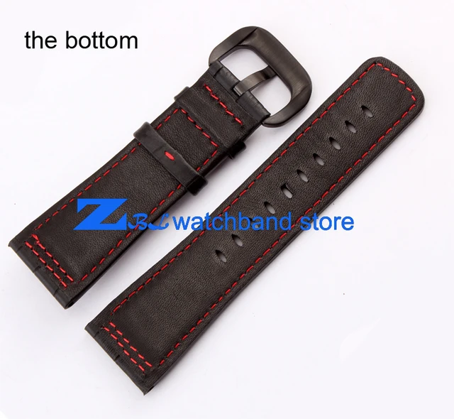 [해외] 높은 품질의 가죽 손목 28 미리메터 블랙 레드 스티치 스트랩 금요일 남성 시계 시계 밴드 액세서리