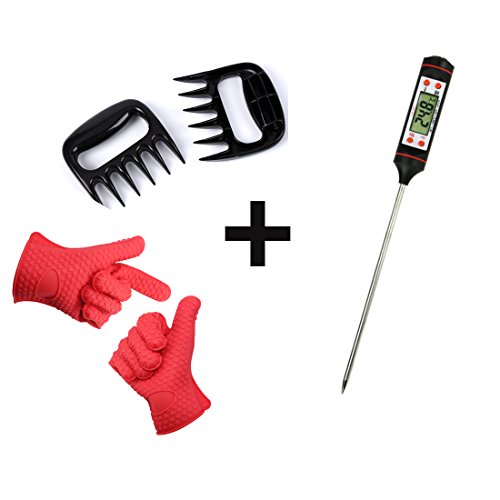 Markkeer 3 Barbecue-Tool-Sets(Silicone BBQ /Cooking Gloves、Barbecue Thermometers、Meat Claws)