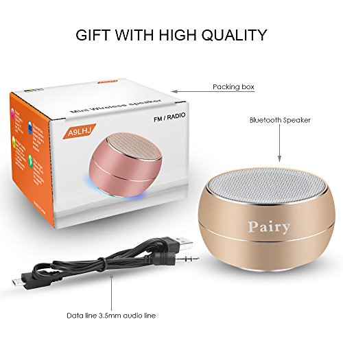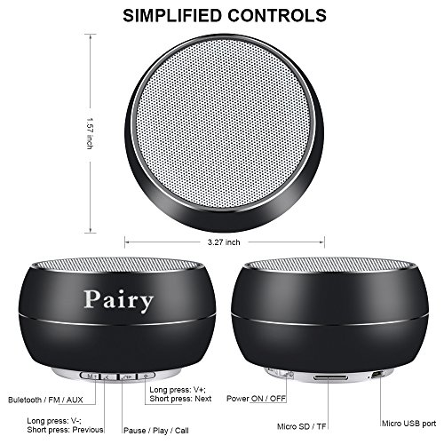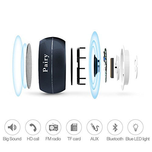 -. Binding : Electronics -. Brand : Pairy -. Feature : Strong Compatibility:Compatible with all Bluetooth enabled devices such as iPhones, iPad, Samsung Galaxy, Android smart phones, tablet PC, computers Smart phones PC and Tablets / Compatible with all Bluetooth-enabled devices. Connect to your iPhone /iPod/iPad/Phones/Tablet/Echo dot in 3 seconds. Built-in microphone: Enables use this Wireless Bluetooth Speaker as a speakerphone, so you can enjoy hands-free calling / This bluetooth speaker comes with built-in high-capacity lithium battery life, more durable for using / The Speaker packs the power of Hi-fidelity, room-filling surround sound in the compact, elegantly portable speaker with super clear sounds -. Label : Pairy -. Manufacturer : Pairy -. PackageQuantity : 1 -. ProductGroup : CE -. ProductTypeName : PORTABLE_AUDIO -. Publisher : Pairy -. Studio : Pairy -. Title : Pairy Portable Bluetooth Speakers with Hands-free Function for iPhone/iPad/PC and More