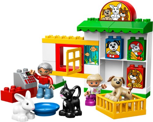 -. Feature : Includes 2 L.E.G.O® DUPLO® figures: Shop keeper and little girl / Features rabbit, cat and dog / L.E.G.O® DUPLO® pieces are sturdy and fun for younger builders / Measures over 7" (17cm) high / 29 elements