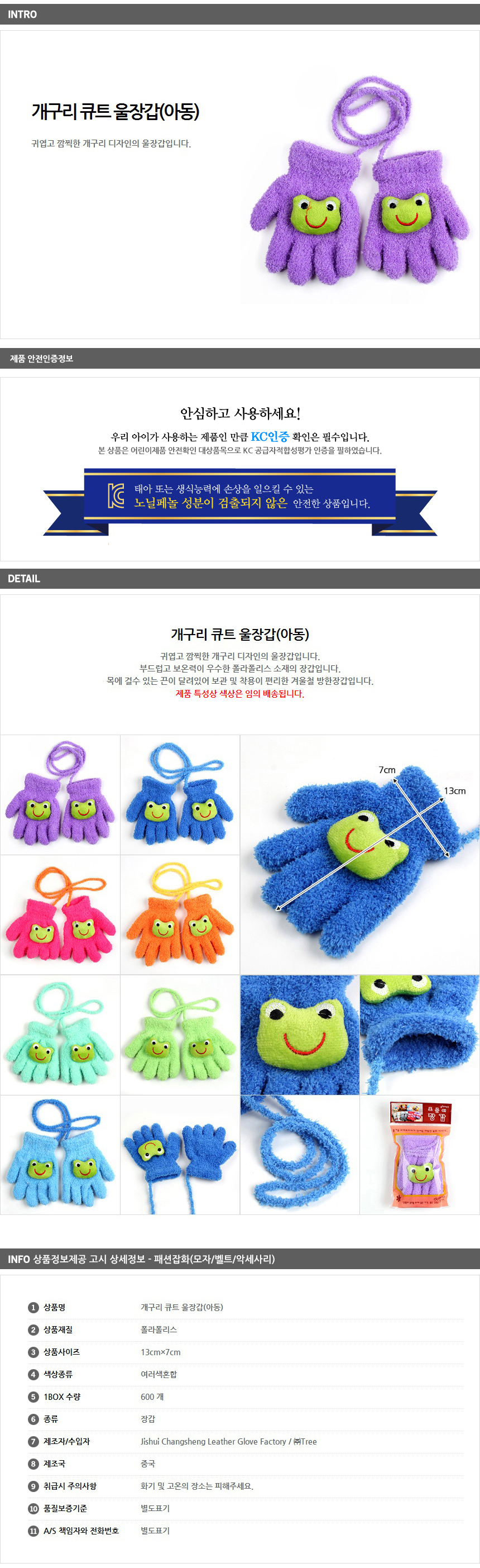 <상품명 : ZP8 개구리 큐트 울장갑(아동)>