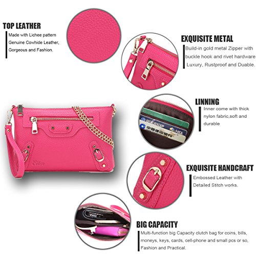 - Title : Women's Bag, Eilen First Layer Lichee Pattern Cow Genuine Leather [Fashion Style] Clutch Phone Case Purse Crossbody [Wristlet] Gold Chain Shoulder Wallet Bag (rose)