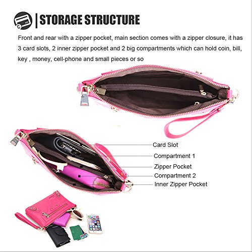 - Feature : Material: 100% First Layer Lichee Pattern Cowhide Genuine Leather with gold color hardware accents. / Large capacity and card-slot design, front and rear zipper pockets, comes with a wrist strap and removable gold chain shoulder strap. / Size:23x15x5cm / Structure: Front and rear with a zipper pocket, main section comes with a zipper closure, it has 3 card slots, 2 inner zipper pocket and 2 big compartments which can hold coin, bill, key , money, cell-phone and small pieces or so / This bag is gorgeous with its High quality genuine leather, Fashion and Practical.