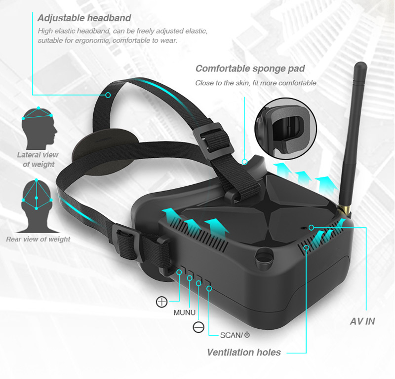 5.8G FPV real time transmission: 1000TVL camera, 5.8G 8CH FPV transmitter and 5.8G 40ch goggles are included. You can easily change the channels of the VTX via the remote controller.