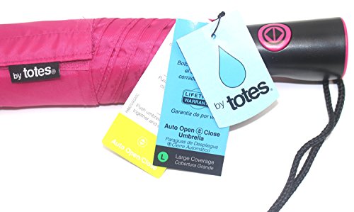 -. Brand : Totes -. Feature : Easy Automatic Open / Super Portable Easy to store inside a car, closet, or bag / Long Rubber Easy Grip Handle / Polyester Fabric / Wide Brim -. ProductGroup : Apparel -. ProductTypeName : LAGE -. Title : TOTES MINI AUTO UMBRELLA (BLUE, PURPLE, ZEBRA)