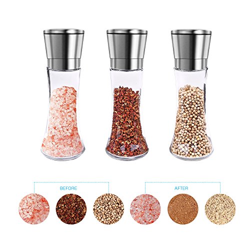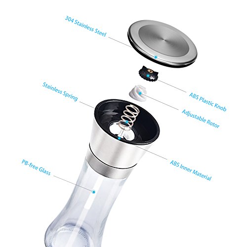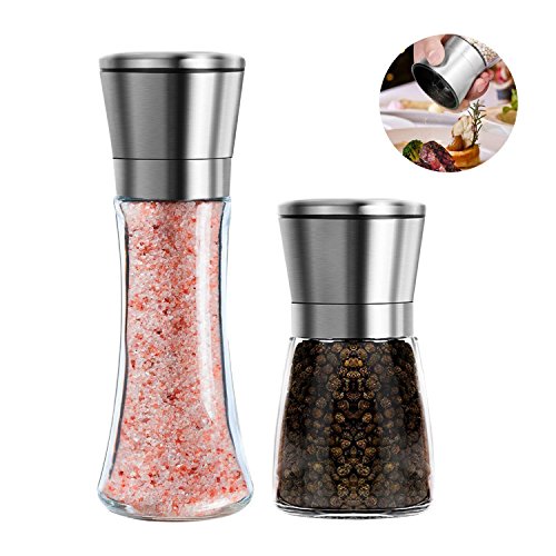 Superior Stainless Steel - The brushed stainless steel material and premium glass brings to you an excellent set of salt and pepper spice shakers that are straightforward to use and easy to grip. This salt and pepper shaker is sure to add its elegant touch to your table