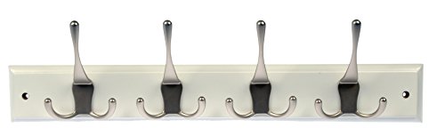 Dorman Hardware 4-1808 Hook Board, with 4 Economy Triple Satin Nickel Hooks, 18-Inch, White Finish