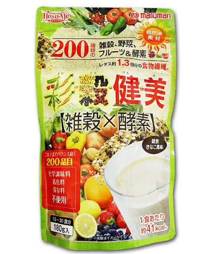 マルマン「彩穀健美」は、高い栄養価で知られている穀物をはじめ、野菜や果物など200品目をバランス良く配合。