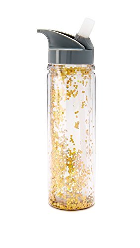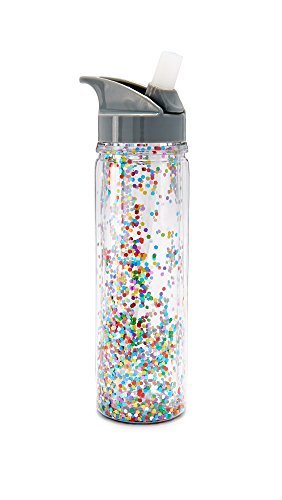 This Slant Collections water bottle is inlaid with shimmery confetti. BPA-free.