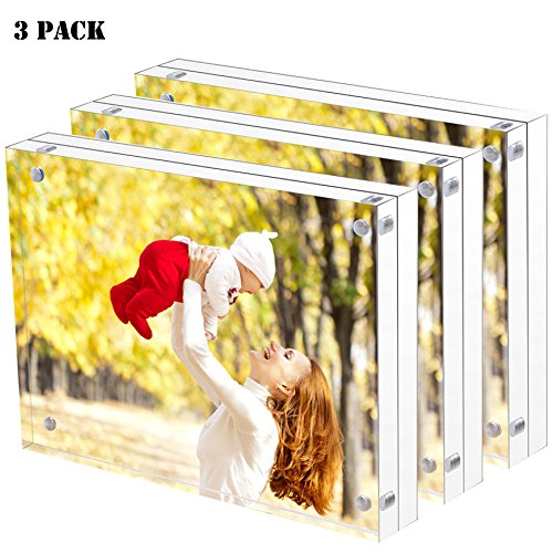 - ACRYLIC FRAME CHANGE PICTURES EASILY: Slide the blocks apart to change your picture - it's never been easier to change and update a picture.Two (10+10mm) blocks hold the picture together, desktop photograph display 4 pairs of magnets to confirm each corner attached exactly.