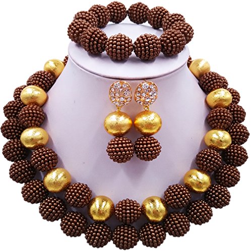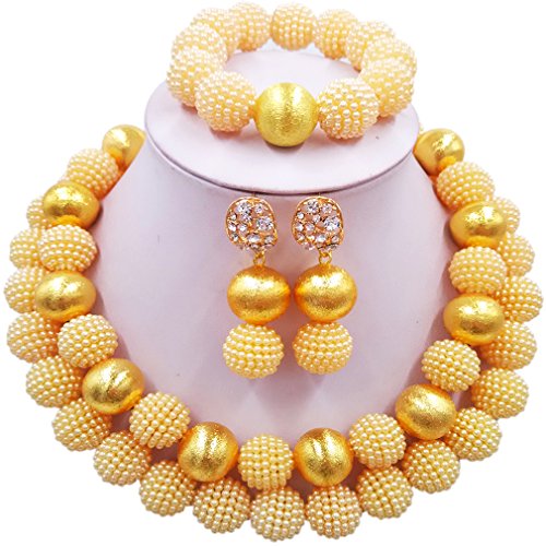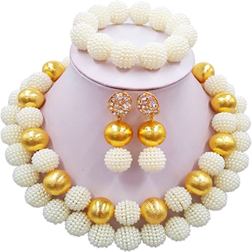 -. Title : laanc Women 2 Rows Multicolor Imitation Pearl Gold Ball African Beads,Nigerian Gift Wedding Jewelry Sets