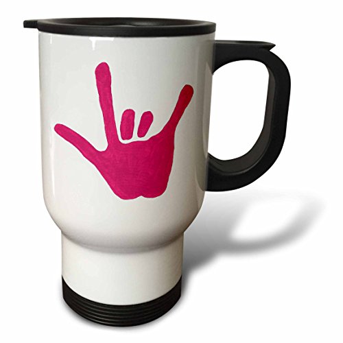 3dRose Love Sign Language Pink Travel Mug, 14-Ounce