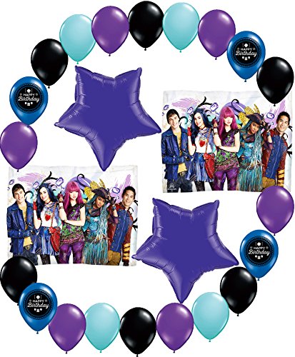 -. Feature : 2 descendants 2 18 inch mylar foil balloon. / 2 purple stars 18 inch mylar balloons. / 6 black 11 inch latex balloons. / 4 baby blue 11 inch latex balloons, 6 purple 11 inch latex balloons. / 4 blue vintage happy birthday 11 inch latex balloons.