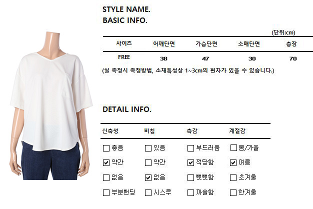 시원하고 깔끔한 브이넥 티블라우스입니다