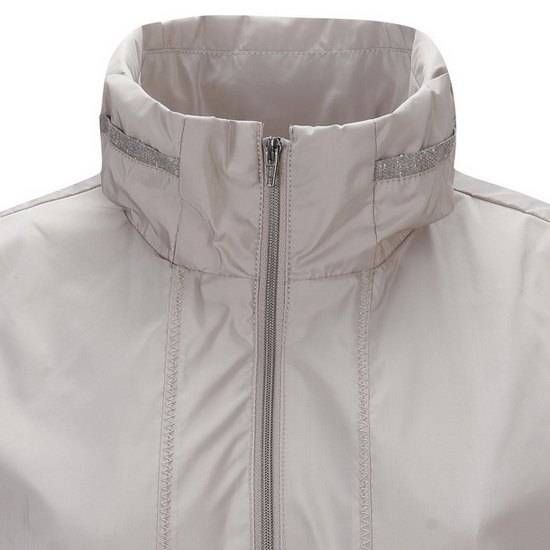 - 셔링과 라인 배색을 적용한 하이넥 디자인에