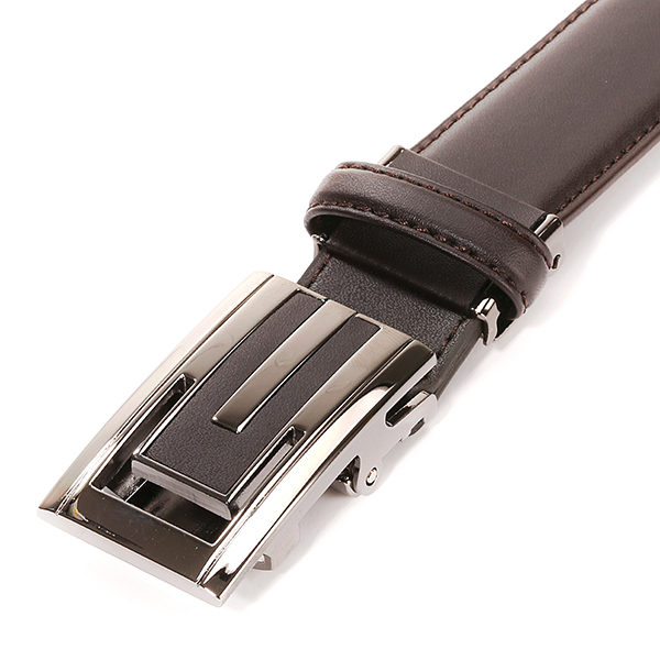 (신상)버클 장식의 고급스러움과 부드러운 소가죽 브라운 자동 벨트