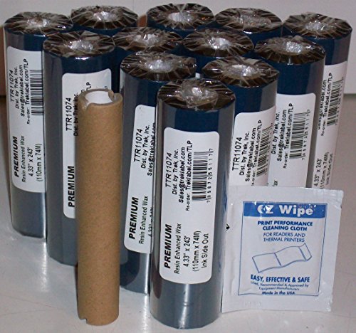 -. Feature : ONLY: $1.75/ROLL! - 12 Rolls - full 4.33"width Premium Resin-Enhanced WAX formula / Shipped USPS PRIORITY at no extra fee - Click on 'Trek Label' for other quantities. / WITH PRINT HEAD CLEANER - FREE EMPTY TAKE-UP core ONLY if requested with order. / Back coated with anti-static protection- Individually wrapped. / Prints thermal transfer labels including tinted. ISO 9001, Rohs compliant, ISEGA tested