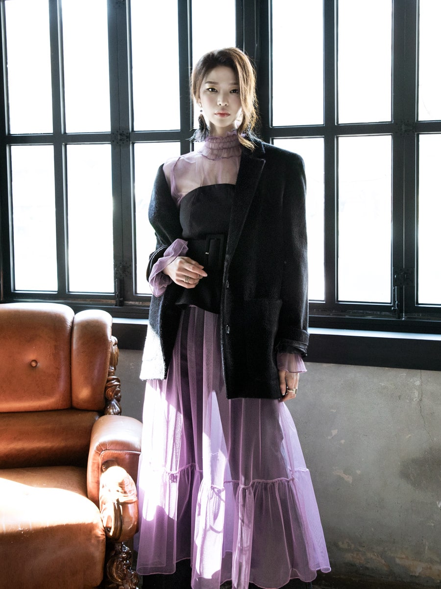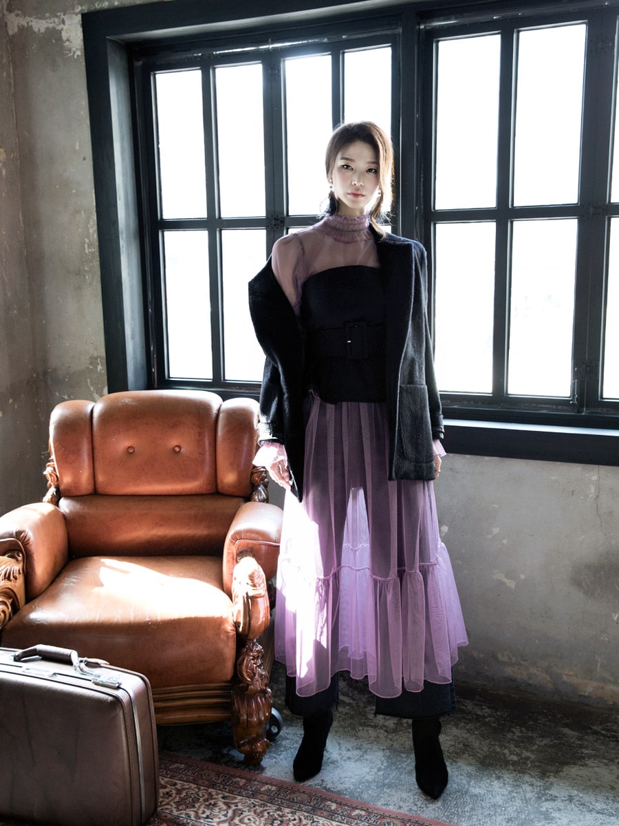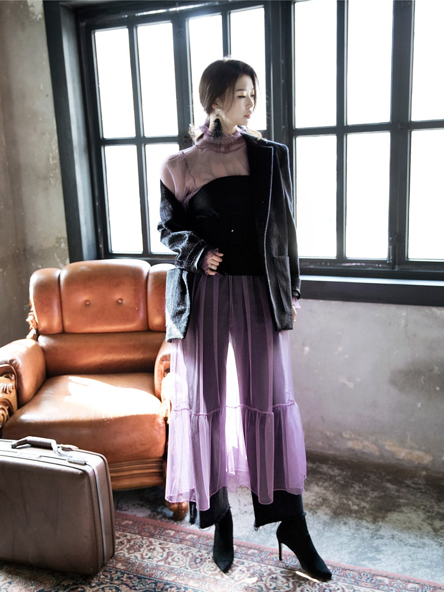 E1696 터닝즈 프릴 레이어드 탑 Black