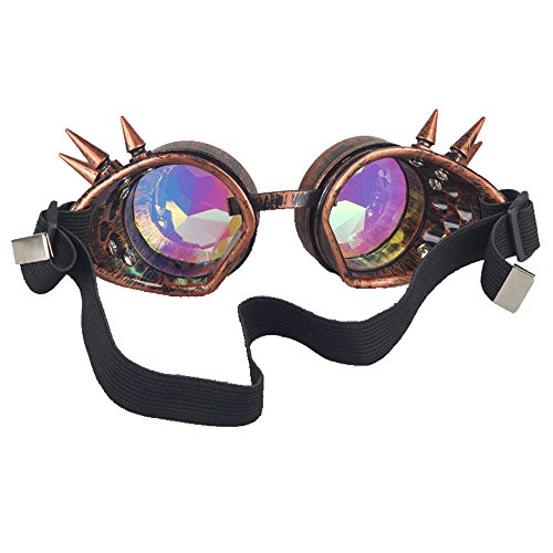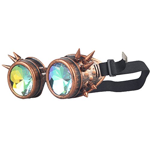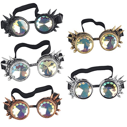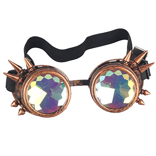 STLY Kaleidoscope Steampunk Rave Glasses Goggles with Rainbow Crystal Glass Lens