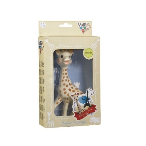 Feature : Vulli comes in natural rubber for baby's teething 0-12 months. Made of 100% Natural Rubber (phthalates Free) and food paint. / Slender, flexible, and soft, baby can squeeze and chew her in complete safety. / Lovable and amusing, she makes a happy sound when her body is squeezed: Stimulate baby's hearing and helps him to understand the link between cause and effect. / She is perfect for soothing Baby's sore gums when teething. / The singular scent of Natural Rubber from the HEVEA TREE makes Sophie very special and easy for your child to identify amid all his other toys