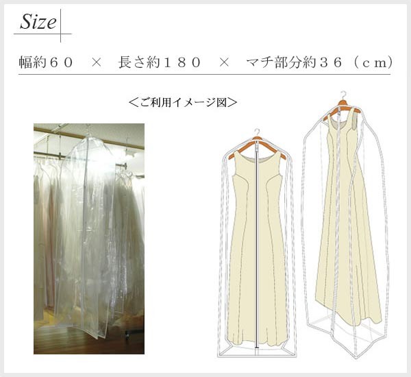 縦長さ 180cm ロングドレスでもOK。 マチがあるので、ボリュームあるドレスにもぴったりです!