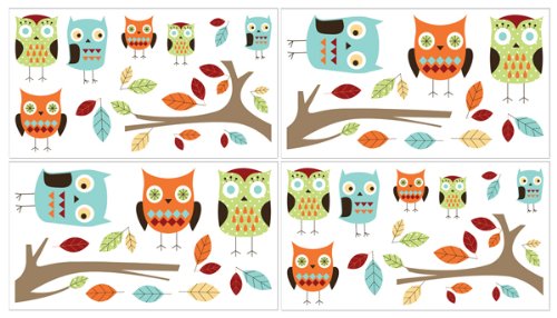 Sweet Jojo Designs 4-Piece Turquoise and Lime Hooty Owl Baby, Childrens and Kids Wall Decal Stickers