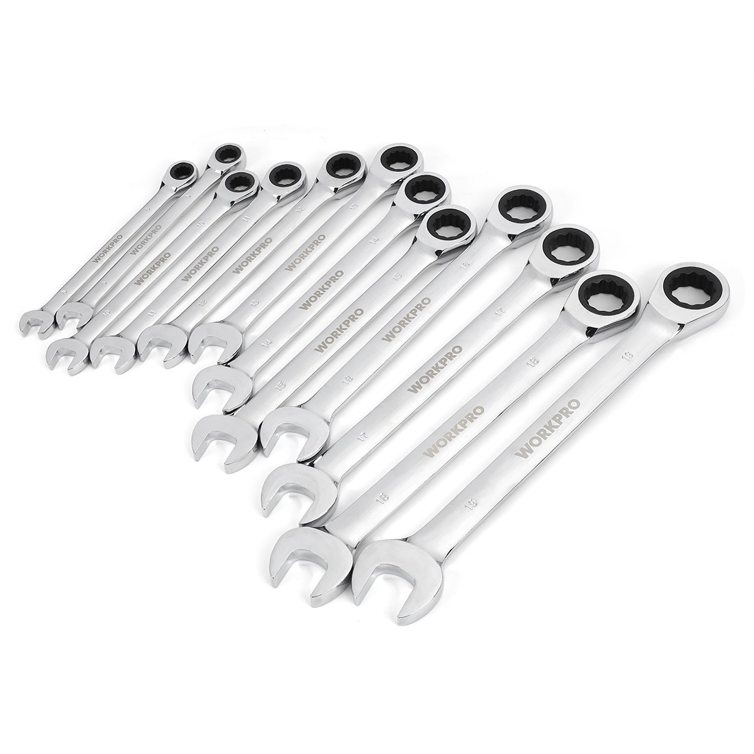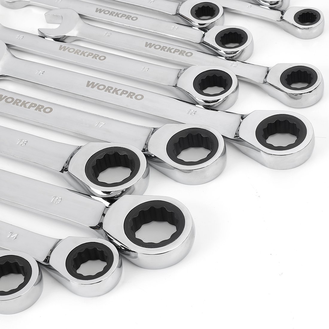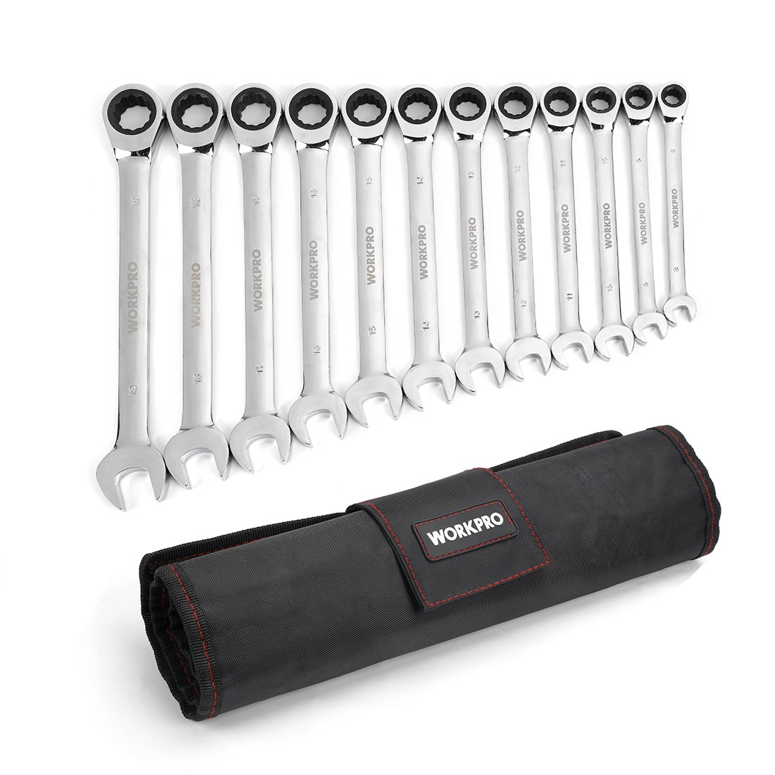WORKPRO 12PC ratchet wrench set Contents: 8, 9, 10, 11, 12, 13, 14, 15, 16, 17, 18, 19 mm Number of gears 72 mountain storage bag Weight: Approximately 1.15 KG Machine parts manufacturing industry · Ironwork