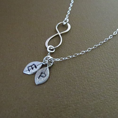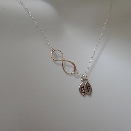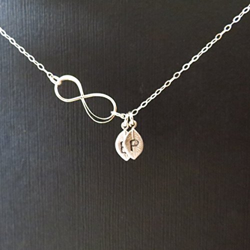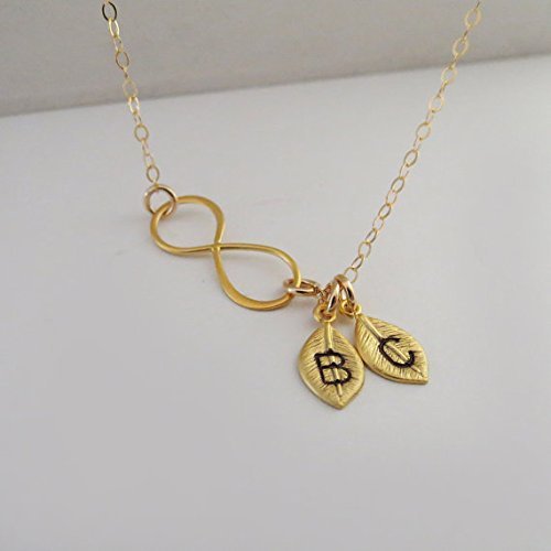 -. Title : Personalized Infinity Necklace with Tiny Leaves, Gold or Silver