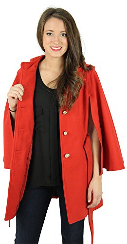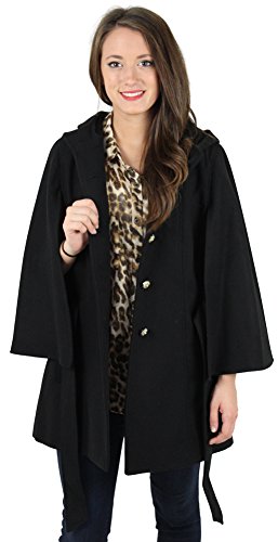 This Jessica Simpson faux wool coat is the perfect way to stay warm and fashionable this season! The cape style coat features large button closures, removable belt, long cape sleeves, front open pocket, large hood, and signature Jessica Simpson lining. The coat is made of 90% polyester, 9% rayon, 1% spandex, and is dry clean only.Feature