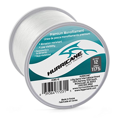 Studio : Hurricane Publisher : Hurricane Binding : Sports Product Description The Hurricane Premium Saltwater Monofilament features a 1/4 lb. spool, small diameter line, and high knot strength. This monofilament is abrasion resistant, and has a low visibility. 0