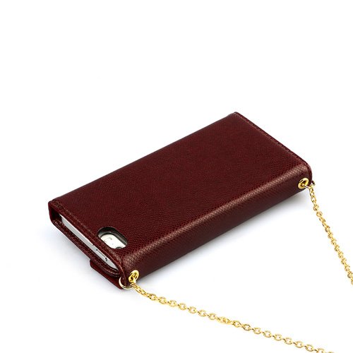 This case, inspired by a cute mini handbag, comes with a chain of gold.