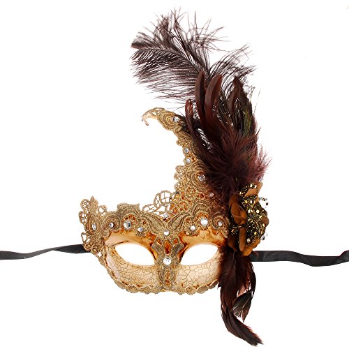 -. Title : Ivory Brocade Feather Masquerade Mask Beyondmasquerade