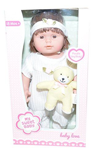 - Feature : These adorable 13 inch tall posable dolls have jointed arms and legs, and realistic details like dimples and baby wrinkles. / Each baby comes with its own removable outfit and teddy bear. / Four assorted styles, style chosen at random (1 doll per order). / For ages 18 months and up. / Enjoy!