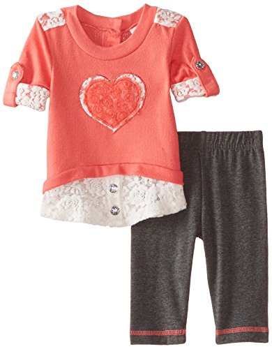 -. Binding : Apparel -. Brand : Little Lass -. Department : baby-girls -. Feature : 2 piece set / Comfortable -. Label : Little Lass Baby -. Manufacturer : Little Lass Baby -. PackageQuantity : 1 -. ProductGroup : Apparel -. ProductTypeName : SHIRT -. Publisher : Little Lass Baby -. Studio : Little Lass Baby -. Title : Little Lass Baby Girls' 2 Piece Legging Set Brushed Knit Lace Little lass offers cute and comfortable styles with quality construction. She is adorable in this 2 piece legging set with a brushed knit top with lace trims, heart applique, and solid knit legging.