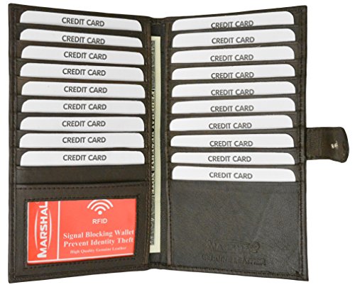 Product Description Protect your RFID Credit Cards, Debit Cards, ID Cards from electronic pickpocketing 19 Credit Card Slots ID Window 2 Large Bill Compartments on the sides Soft Premium Leather 0