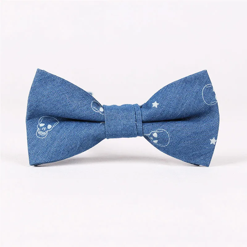 | [해외]Mantieqingway 패션 데님 코튼 남성 패션 캐주얼 남성 넥타이 넥타이 최신 남성 두개골 나비 넥타이 웨딩 |
