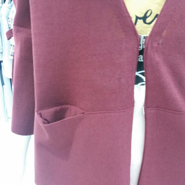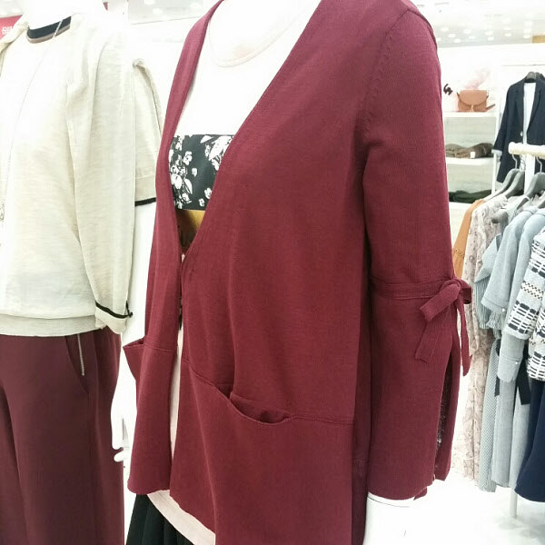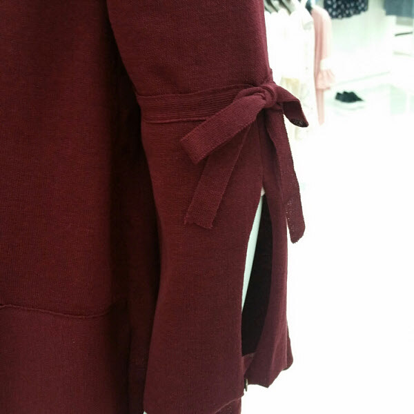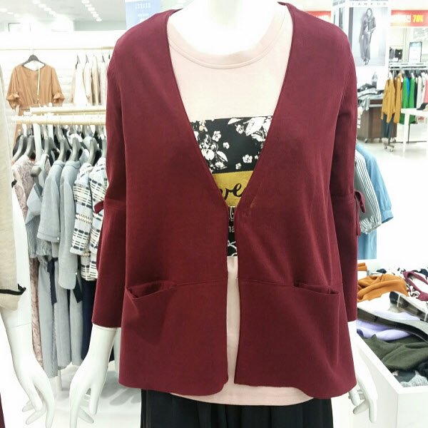 옆선이 퍼지는 귀여운 가디건이예요소매트임과 리본장식포인트예요와인색상이 예뻐요