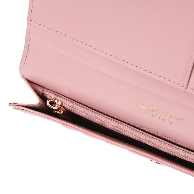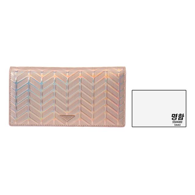 핑크 컬러의 프리즘 로젤라 패턴이 깔끔한 외관을 연출하는 중지갑입니다.