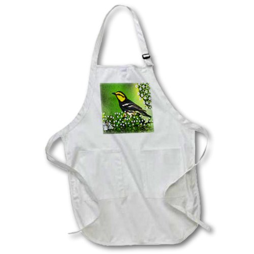 3dRose apr_23314_1 Enchanted Bird Full Length Apron with Pockets, 22 by 30-Inch, White