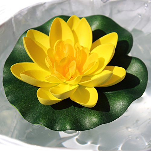 Flyusa 1 Pcs Diameter 3.94 Inch Floating Foam Lotus Water Lily Pond Decor Artificial Pond Plants Flower(Open Type,Orange)