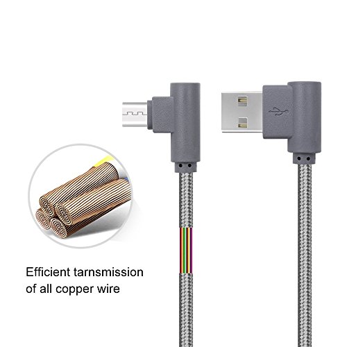 APFEN Angled 90 Degree Nylon Braided Micro USB to USB A Date and Sync Date Android Cable Pack of 2