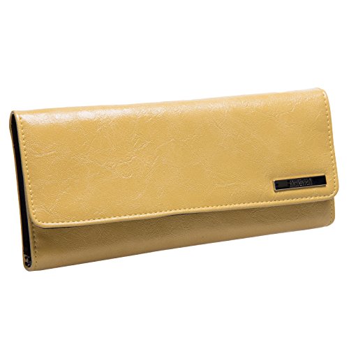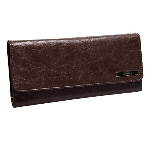This clutch wallet by Kenneth Cole Reaction features three large slip pockets, nine credit card slots, one ID window and a small kiss-lock coin purse in a slip pocket. The wallet is fully lined and designed with a hidden magnetic closure. The leopard lining adds an extra touch of fashion to this classic tri fold wallet. Measures 8.5" x 4" x 1.25"