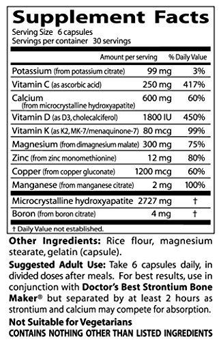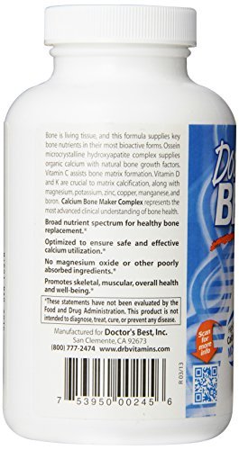 -. Feature : Bone is living tissue, this formula supplies key bone nutrients in their most bioactive forms. Ossein microcrystalline hydroxyapatite complex supplies organic calcium with natural bone growth factors. / Vitamin C assists bone matrix formation. Vitamin and K are crucial to matrix calcification, along magnesium, potassium, zinc, copper, manganese, and boron. / Calcium Bone Maker Complex is the new generation bone support supplement, designed from the new understanding of bone as dynamic, complex tissue. / Label images may vary