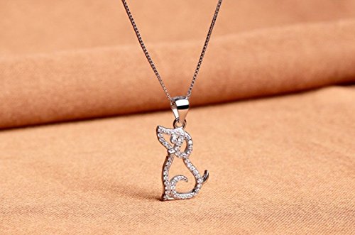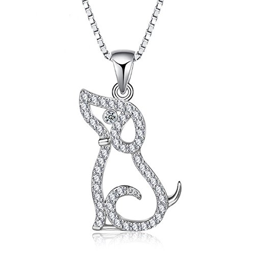 -. Title : Rhodium Plated 925 Sterling Silver Cubic Zirconia Dog Pendant Necklace 18"